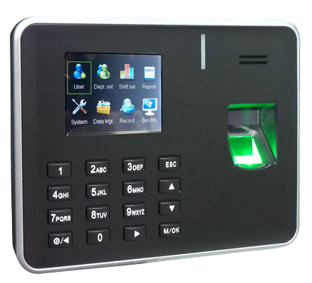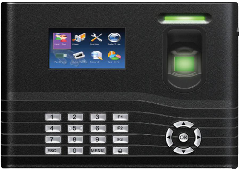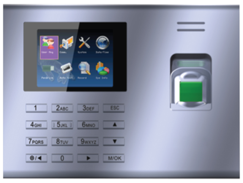 Standalone attendance terminal, recommended for small office, register up to 500 fingerprints, built-in TCP/IP & USB host option to download the logs, admin Lock to protect system menu.